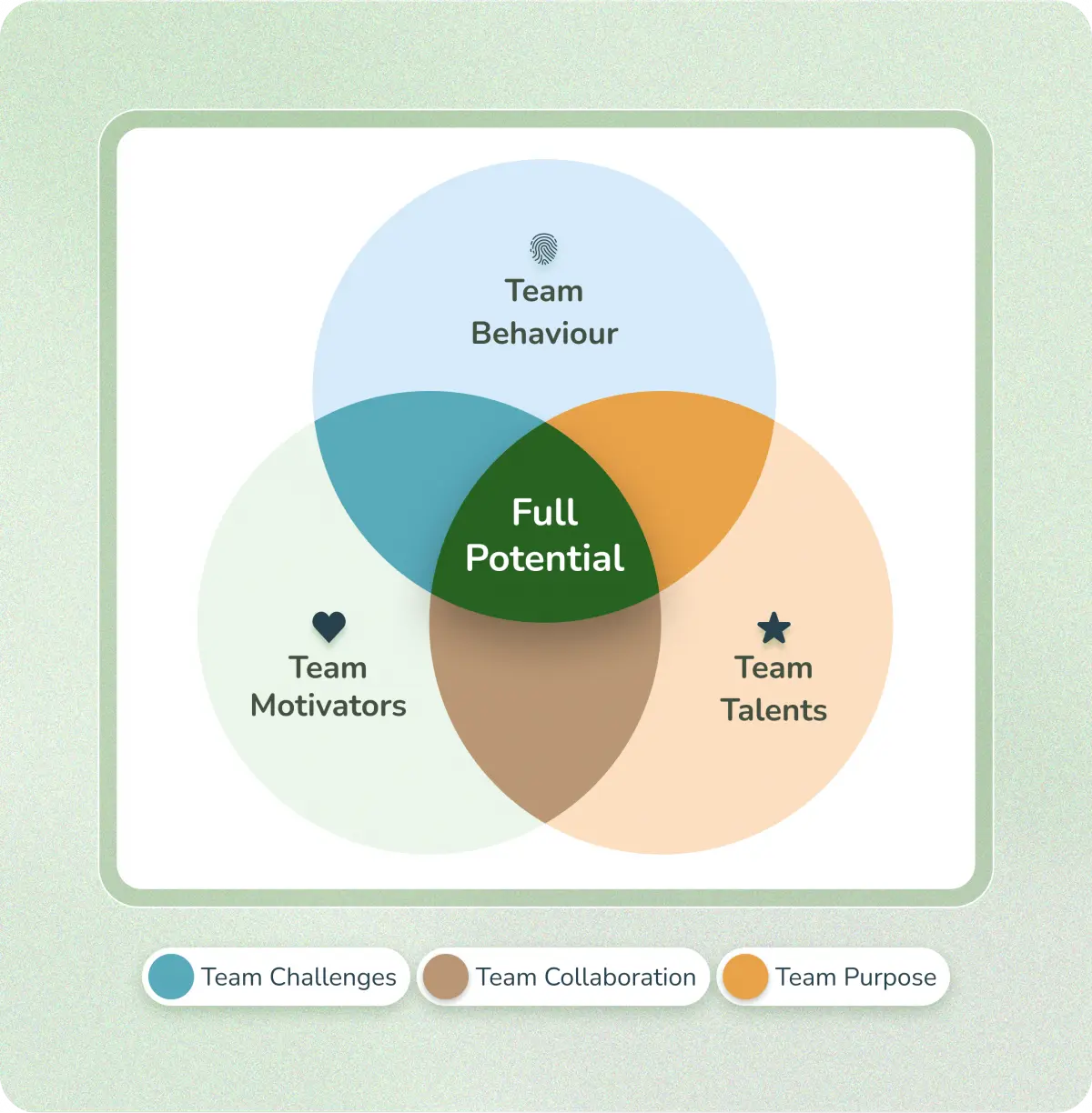 De combinatie van Behaviour + Motivators + Talents verandert een groep individuen in een team dat klaar is voor prestaties én verandering.